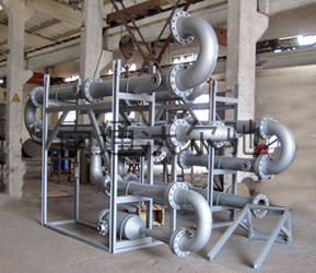 反应器是化学反应工艺中的核心设备,它按结构大致可分管式、釜式、塔式、固定床等,广泛适用于气、液、固相的化学混合反应。我公司研制开发的JHF系列强化传热反应器内部结构与静态混合器相仿,能使进入强化传热混合反应器的不同液体互相很好地混合,但与常规的静态混合器内部单元不同,其内部构件不是用板材而是用较细的管材制作,细管内部可以通加热介质也可以通冷却介质,所以内部单元不仅能起到了充分混合,而且能提供很大的传热比表面积。