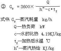 YTW浸没式汽水加热器有额定的蒸汽耗量指标,设计时根据实际所需要的蒸汽耗量,选用一台或多台加热器。实际所需蒸汽耗量可参照以下公式(①用于间断加热,②用于连续加热)确定:
