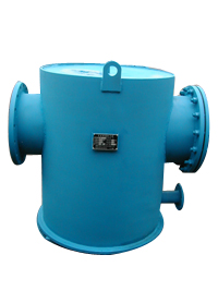 除污器工作时,蝶阀阀板处于全开状态,介质由进口法兰进入滤网内侧,经网眼过滤后进入滤网外侧,由出口法兰离开除污器进入管路系统除污器排污时,蝶阀阀板处于关闭状态,排污管外阀门打开,由于除污器内部介质与排污管外产生压差,介质流向改变,由滤网外侧流入内侧、起反冲作用,将杂质和污物排出。排污过程中,大部分介质仍由出口法兰进入管路系统,系统不停机。