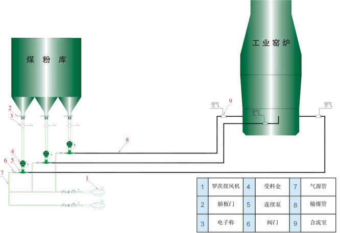 由PSG系列气固喷射器组成的低压连续输送系统,不仅在工程造价上体现其投资省、而且运行成本低。由于无进出料及排气阀门,无易损件,因此运行费用低,同时使用低压输送比空压机系统输送要节约能耗30%左右。