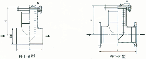 (2)T型法兰连接直通式过滤器(PFT-F型)(DN50~400,PN≤5.OMPa)